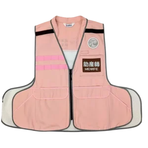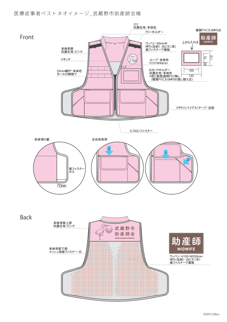 ・「武蔵野市助産師会」様もイメージイラストを印刷、抗菌素材、襟付きベスト