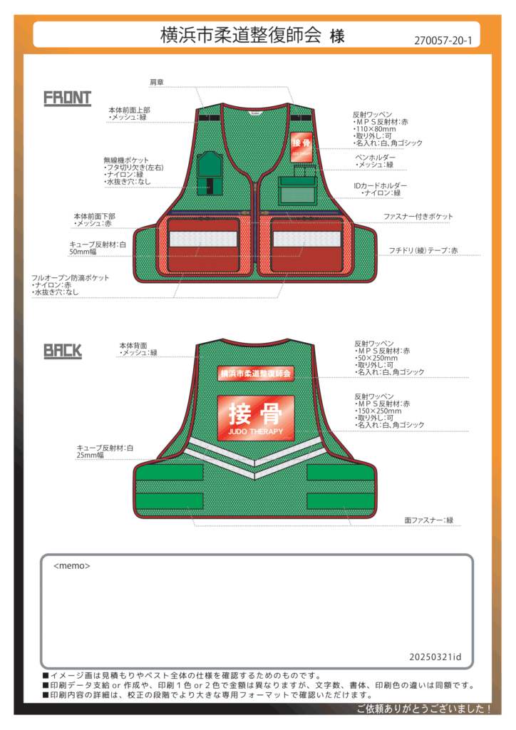 このベストのカスタム項目